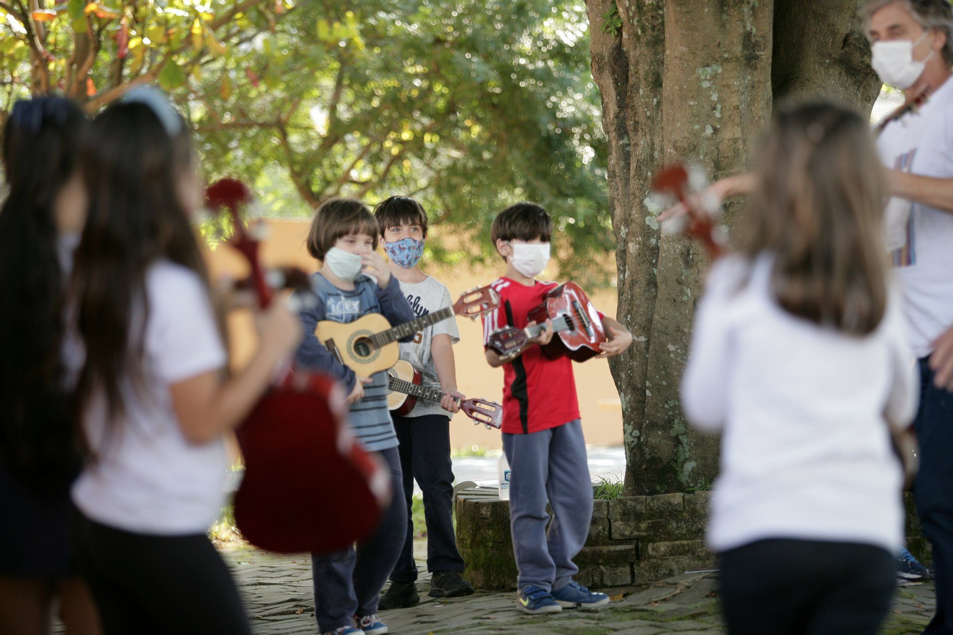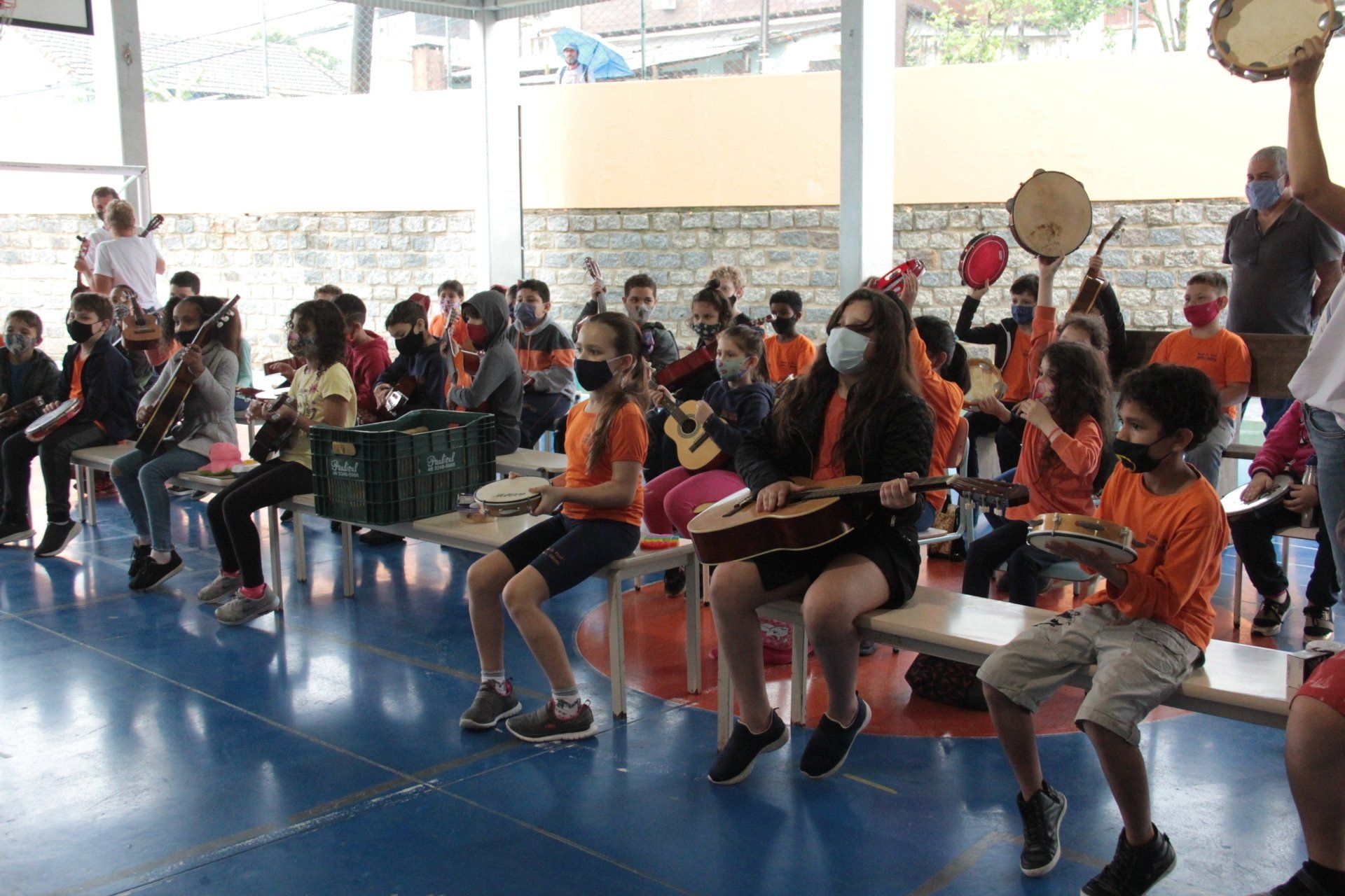 O projeto TOCANDO A HISTÓRIA DO CHORO com a Orquestra de Choro Campeche vem realizando, desde 2018, apresentações e oficinas gratuitas para crianças de escolas públicas da Grande Florianópolis.