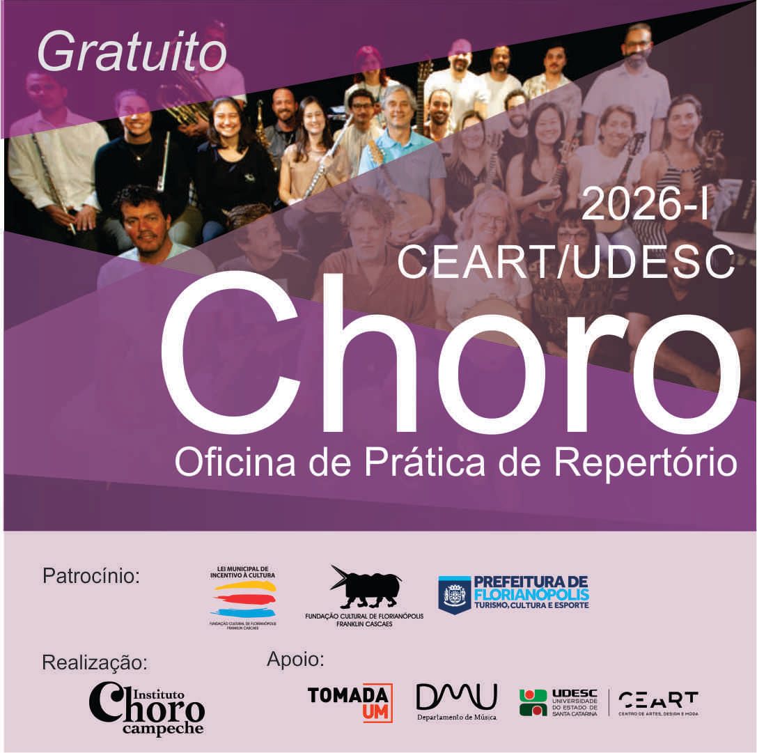 A Oficina de Prática de Repertório de Choro da UDESC é um convênio do Programa de extensão TOMADA UM do Centro de Artes da Udesc, e o INSTITUTO CHORO CAMPECHE, através do Projeto TOCANDO A HISTÓRIA DO CHORO, financiado pela Lei Municipal de Incentivo à Cultura de Florianópolis n.3659/91.